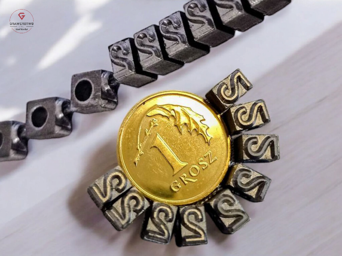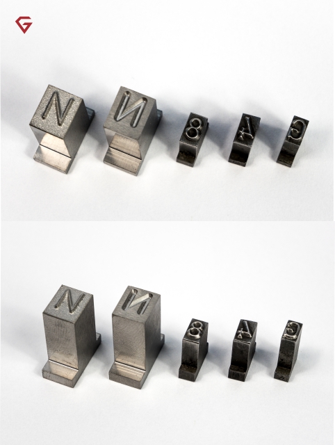 Czcionki stalowe lub mosiężne wykonujemy na podstawie rysunku technicznego, projektu graficznego lub wzoru czcionki otrzymanego od klienta.