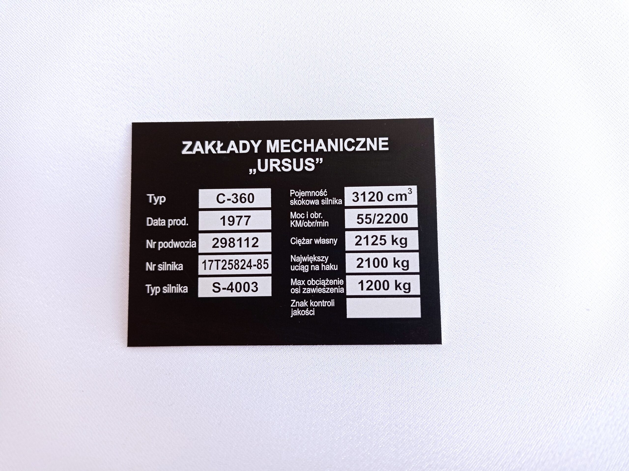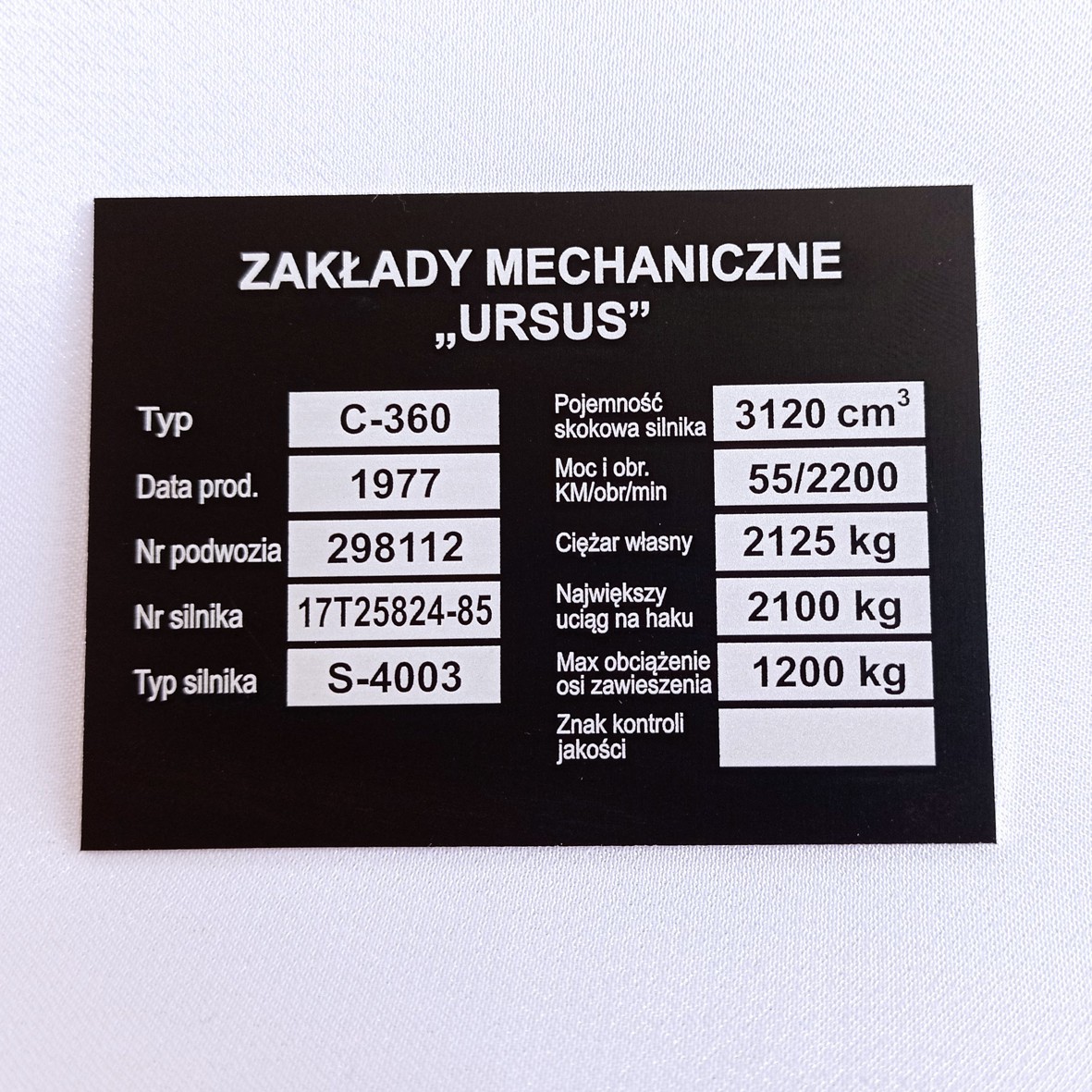 -Materiał: aluminium, stal nierdzewna, laminat grawerski według wymagań klienta.